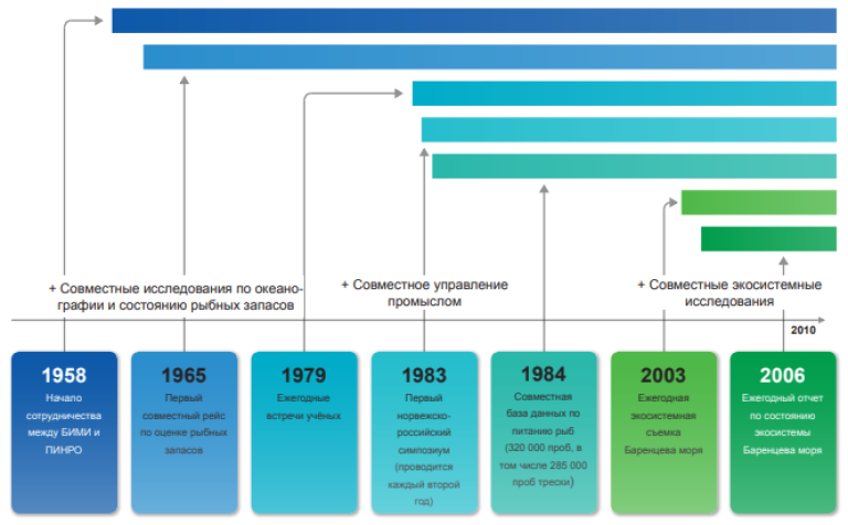 Первые шаги к установлению российско-норвежского сотрудничества в области океанологии и рыболовства относятся к началу XIX века, когда два выдающихся ученых Николай Книпович и Фритьёф Нансен, обсуждали перспективы исследования рыбных запасов в Баренцевом море при посещении Норвегии первого российского научно-поискового судна «Андрей Первозванный». Именно эти связи послужили основой для дальнейшего развития таких отношений двух соседних баренцевоморских государств, которых к сожалению были прерваны в начале революции в России в 1917 году, а в последующем Второй мировой войной.